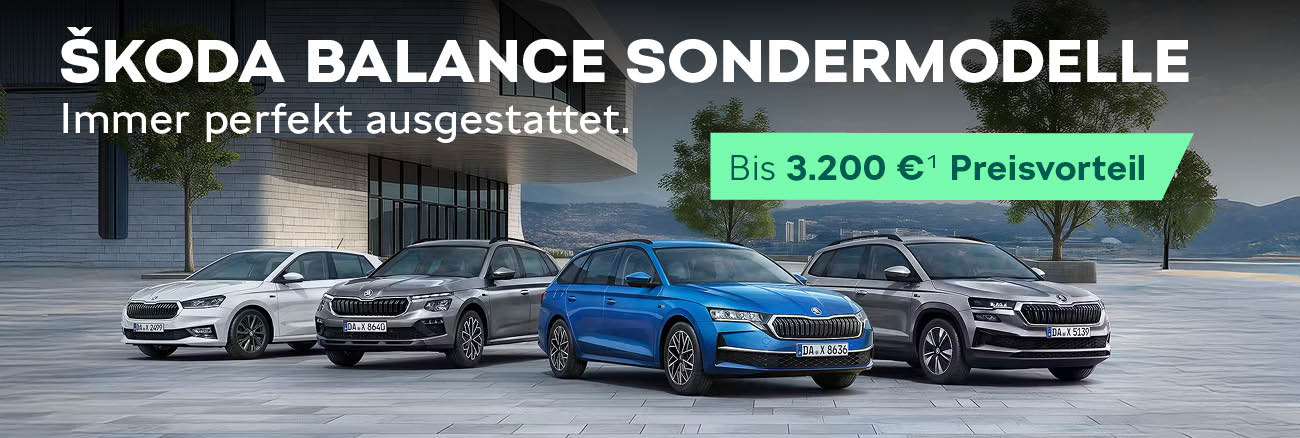 Kombi, Kleinwagen oder doch SUV? Sie haben die Wahl! Egal, wofür Sie sich entscheiden – mit unseren neuen Balance Sondermodellen Octavia, Octavia Combi, Fabia, Scala, Kamiq und Karoq landen Sie immer einen Volltreffer. Denn „Balance“ ist mehr als ein Name. Balance ist hier Programm. Was das bedeutet? Nicht zu viel und nicht zu wenig. Perfekt ausgestattet für den Alltag. Genau richtig, um jede Situation mit Leichtigkeit zu meistern. Und dabei immer: zu einem sensationellen Preis.