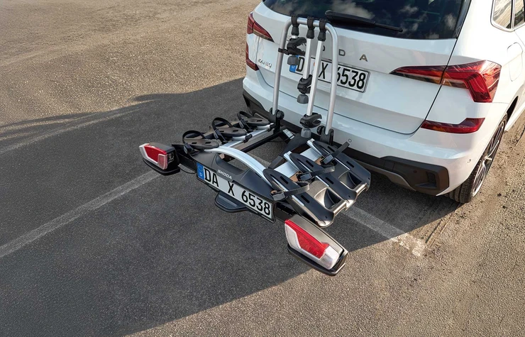 Für den sicheren Transport von bis zu drei Fahrrädern oder zwei E-Bikes, max. Zuladung 60 kg (max. 25 kg pro Fahrrad). Ein Abschließen der Fahrräder am Träger und des Trägers am Fahrzeug ist möglich. Freier Zugang zum Kofferraum durch Kippmechanismus. Nicht für Superb iV PHEV (4. Gen.) und Kodiaq iV PHEV (2. Gen.).