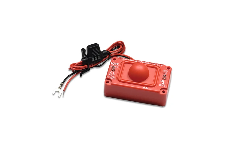 Ultraschallimpulse (Reichweite/Radius ca. 6 m, 360 Grad) bieten wirkungsvollen Rundumschutz vor Mardern. Zur Montage im unteren Motorbereich, wasser- und schmutzbeständig.